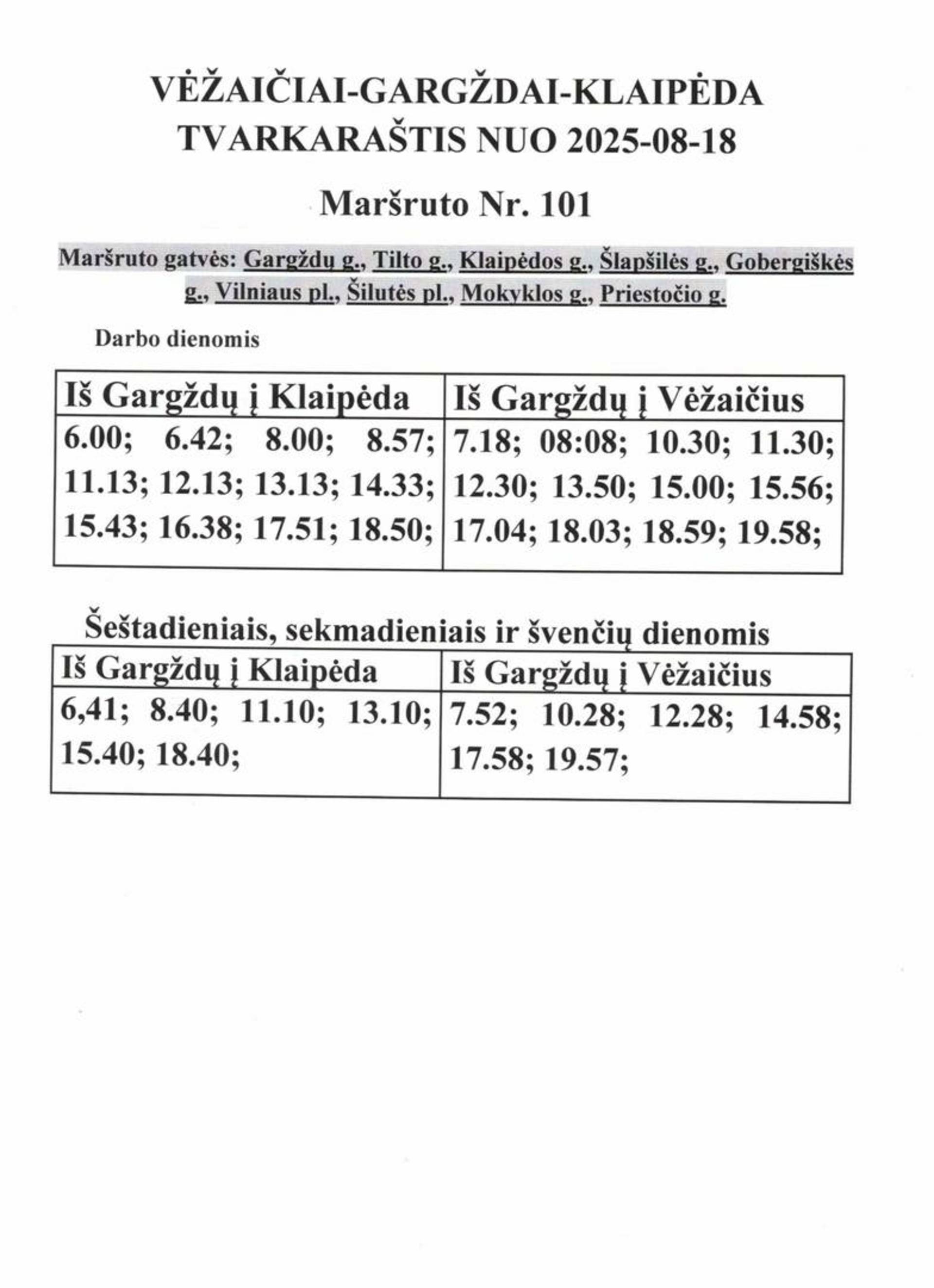 - Vilnius - Gargždai - Klaipėda eismo grafikas