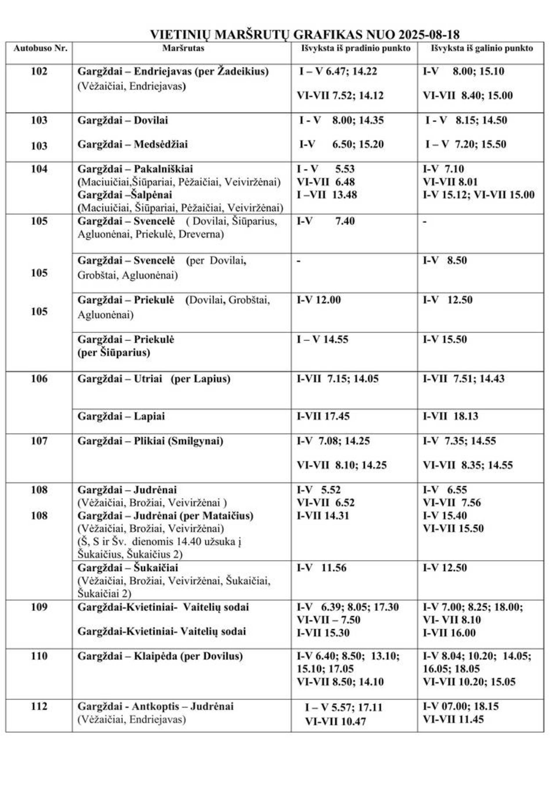 VIETINIŲ MARŠRUTŲ GRAFIKAS