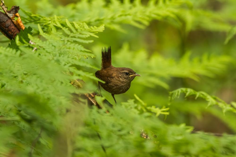 Appearance: A very small, short-tailed bird. It carries its tail curled up. The upper part of the body of both the male and the female is brown with dark streaks, the eyebrow is light. The underside is greyish with a dark transverse pattern. The beak is grey, the legs are brownish-pink.