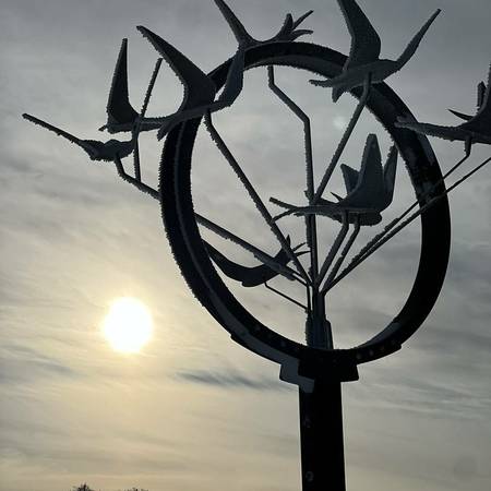 The four taller sculptures, marking the critical turning points of the year – two solstices and two equinoxes – play a special role. Their individual elements are moved by the wind, emphasizing the power and vitality of nature, and the entire sculptures are revealed only when touched by a person.
