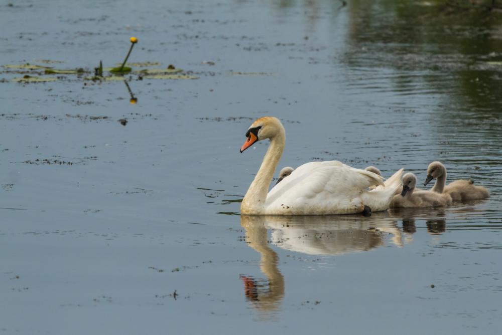 Perėjimas: Lizdą paprastai pradeda statyti patinas, o patelė prisijungia, jei sutinka su pasirinkta vieta. Lizdo struktūra prasideda nuo lizdavietės substrato, lizdo kalnelio ir galiausiai puodelio ar dubens. Paprastai būna 5-8 kiaušiniai (nuo 1 iki 11). Paprastai kiaušiniai dedami praėjus 3 d. po lizdo užbaigimo, tačiau gali būti dedami ir praėjus 11 d. po lizdo užbaigimo; kartais kiaušiniai gali būti padedami dar neužbaigus lizdo. Po švelnių žiemų kiaušinių dėjimas gali prasidėti anksčiau. Kiaušiniai dedami ryte, 48 valandų intervalais. Patinas šiuo metu yra labai teritorinis, patruliuoja ir saugo lizdą, kol patelė deda kiaušinius; dažnai sėdi ant kiaušinių, kol patelė maitinasi. Inkubaciją dažniausiai atlieka tik patelė, tačiau yra užfiksuotas atvejis, kai patinas sėkmingai baigė inkubaciją mirus patelei. Skirtingai nei patinai, patelės inkubacijos metu turi perėjimo demę, t. y. pliką, gausiai kraujagislėmis aprūpintą demę ant krūtinės, kuri naudojama inkubacijos metu.