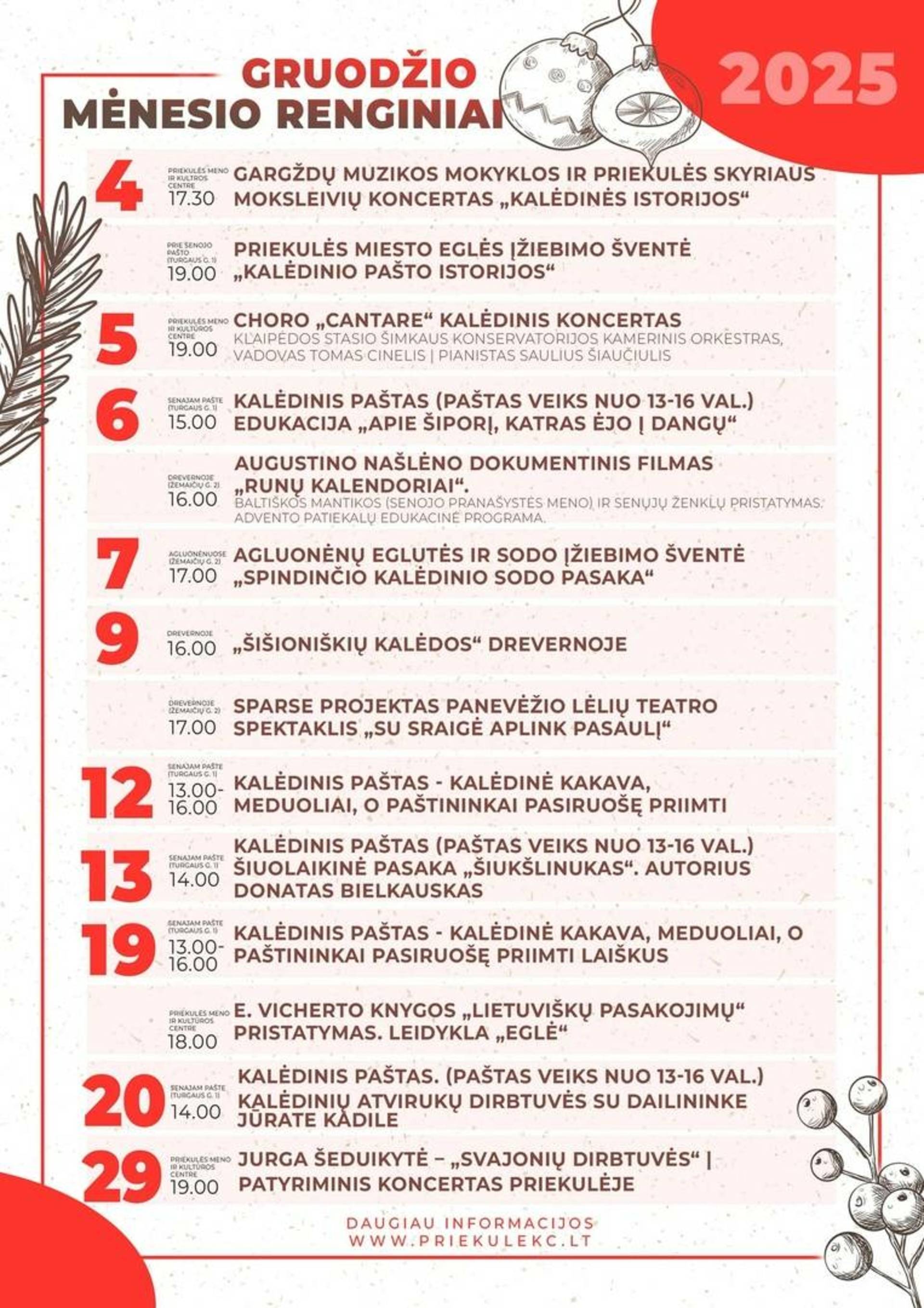 - Laikas: gruodžio 13, 20, 27 d. 13:00 val.