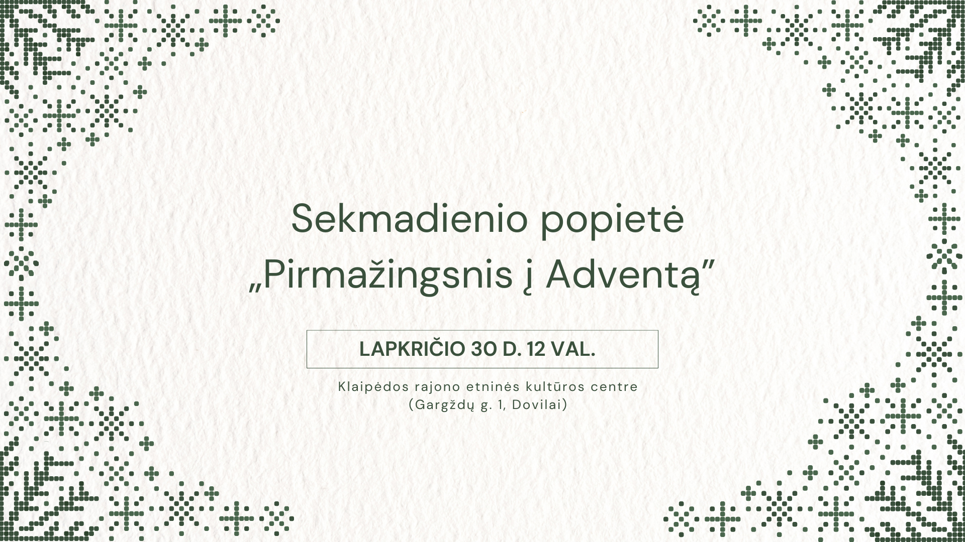 - Vieta: Kretingalės kultūros centras (Klaipėdos g. 10, Kretingalė).