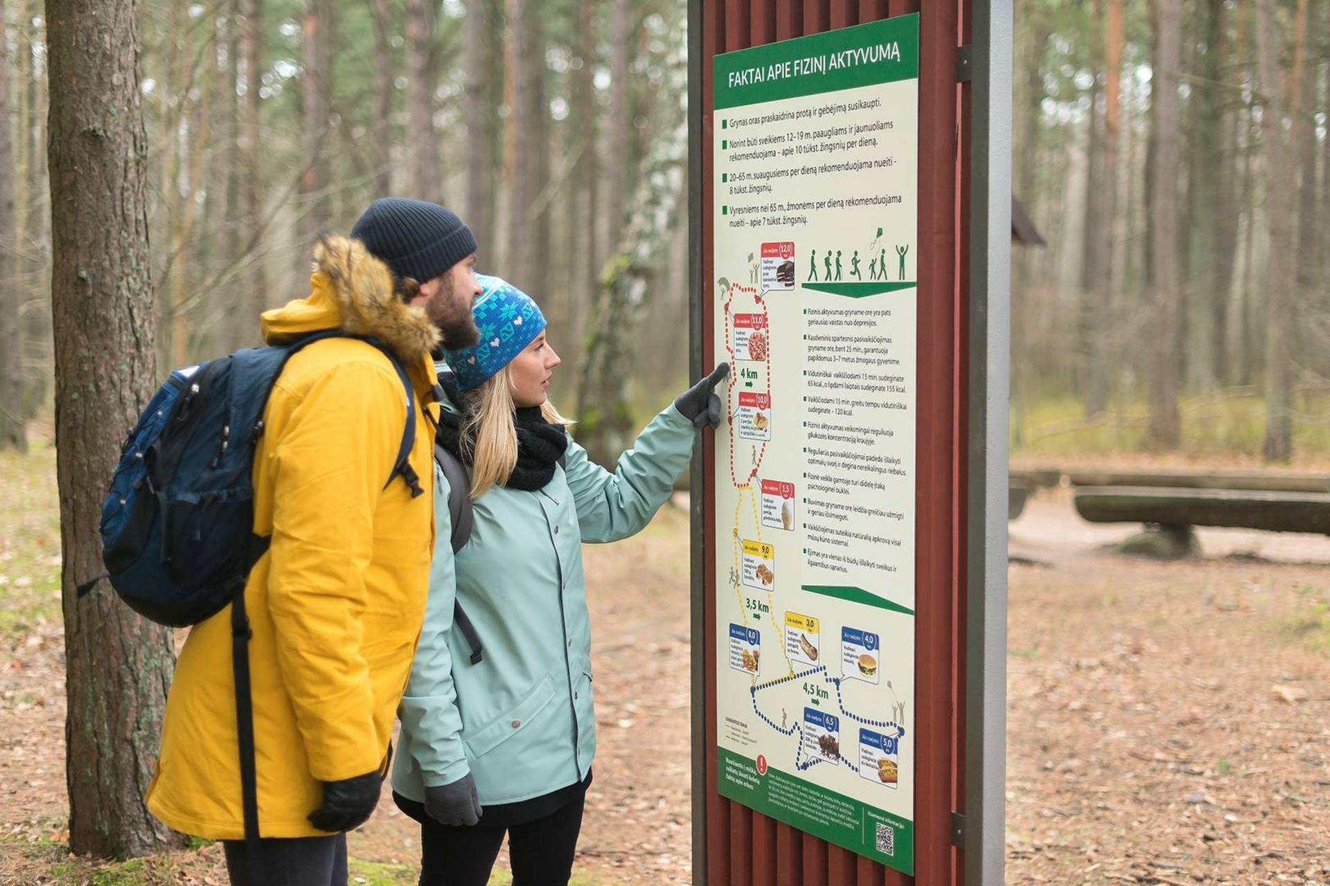 Pradėjus eiti nuo Pajūrio regioninio parko direkcijos aikštelės nepasiklysti padeda rodyklės, o lentelėse galima rasti informacijos apie nueitą atstumą, vaizdingų palyginimų, sudeginamas kalorijas, einant atitinkamą atstumą. Tam panaudoti populiarūs maisto produktai ir patiekalai, priverčiantys susimąstyti apie sveikesnę mitybą ir fizinį aktyvumą.