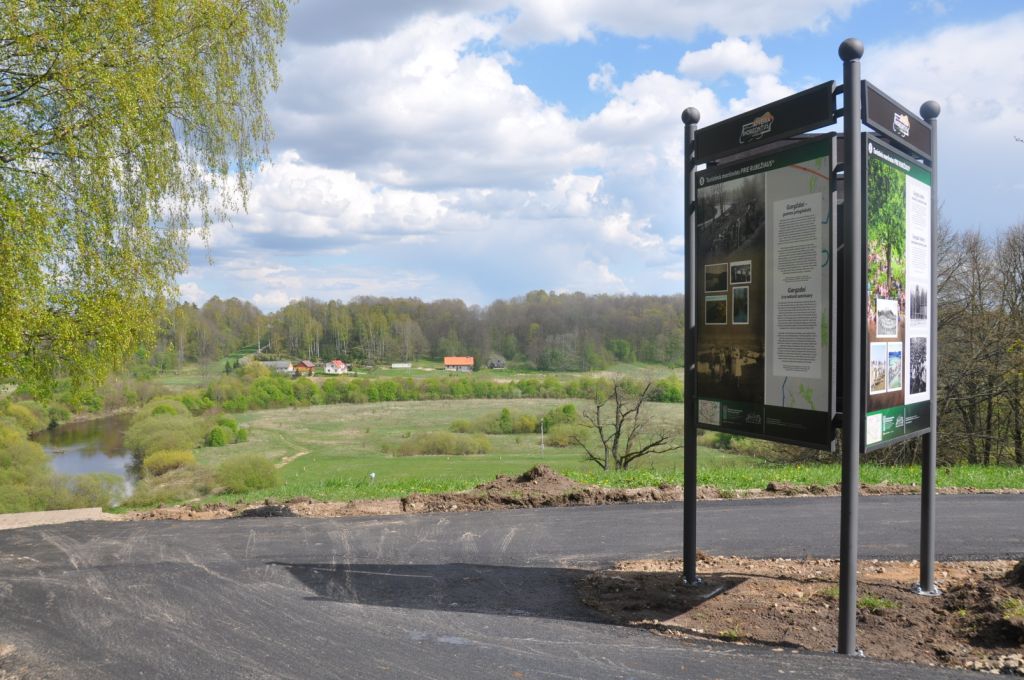 Parke ir Minijos slėnyje įrengtuose 2 stenduose galima rasti informacijos apie miestelėnų anksčiau ir dabar labai mėgstamą švenčių vietą – Minijos slėnį, bei dabartinių Gargždų pradžią žyminčiu, XV a. įkurtu Gargždų dvaru. Dvaro ginamose apylinkėse pamažu pradėjo kurtis kaimeliai, o šalia dvaro – gyvenvietė. Valdant Rönne giminei dvaras tapo ekonominio ir kultūrinio klestėjimo centru. Buvo vystoma stipri ūkinė veikla – dvaras turėjo savo bravorą ir malūną. Taip pat virė ir tikras kultūrinis dvaro gyvenimas – vyko kilmingųjų priėmimai, romantiški pasivaikščiojimai po išpuoselėtą parką, poezijos skaitymai. Karo ir tarpukario metais dvaro pastatai buvo apgadinti, liepsnojo prie gaisrus, buvo išparduoti ir užstatyti privačiais pastatais, tad šių dienų jie nebesulaukė.