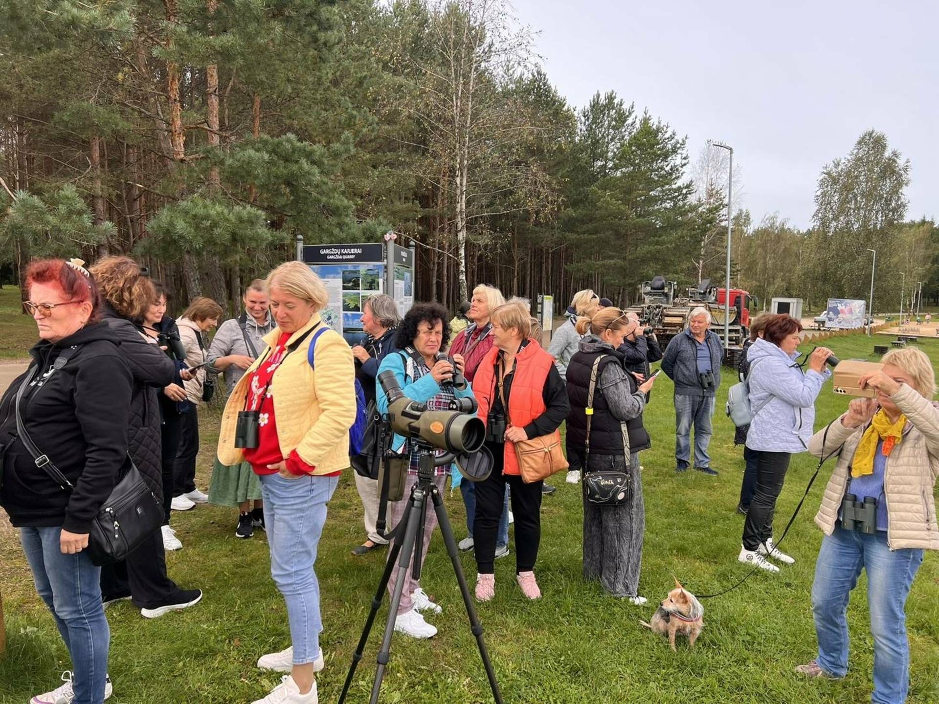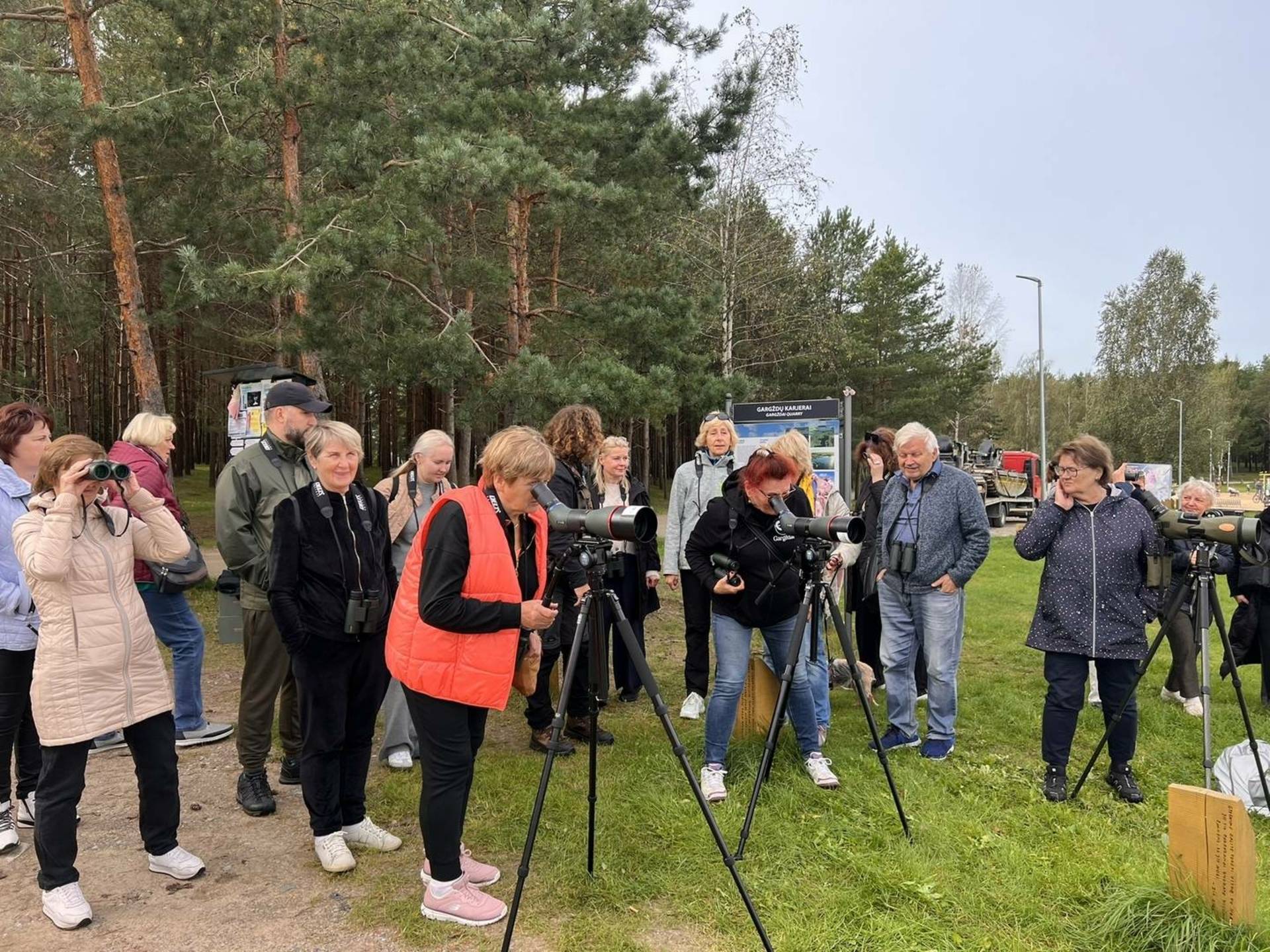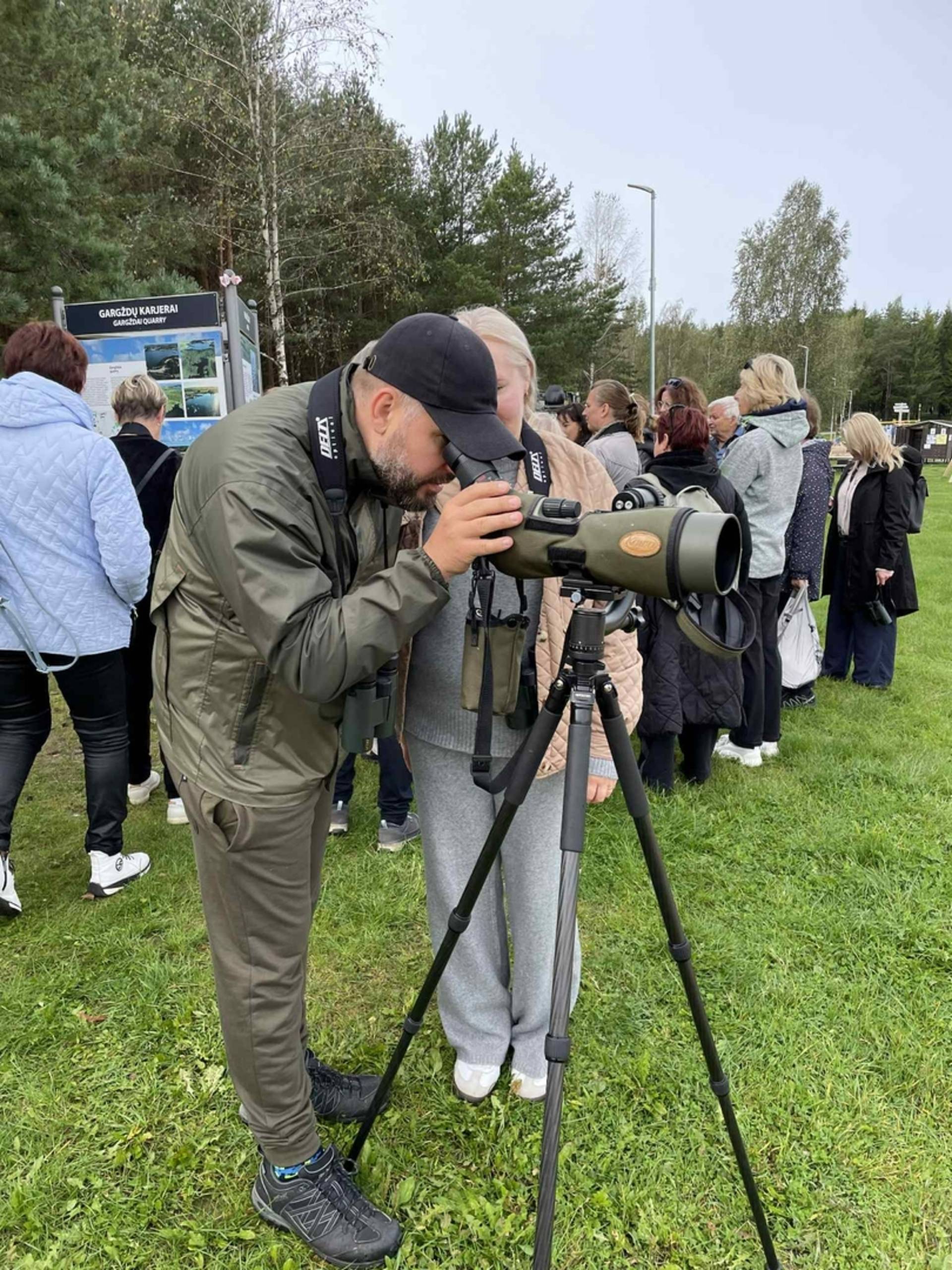 Ekskursija prasidėjo prie Dovilų karjerų, kur dalyvių laukė profesionalus ornitologas Borisas Belchevas. Jis ne tik pasidalijo savo žiniomis apie paukščius, bet ir padėjo juos stebėti natūralioje aplinkoje, kviesdamas įsiklausyti į gamtos garsus ir pažinti sparnuočius iš arčiau. Kad paukščius stebėti būtų dar paprasčiau, Klaipėdos rajono turizmo informacijos centras visiems renginio dalyviams išdalino profesionalius žiūronus bei suteikė galimybę pasinaudoti monokliais.