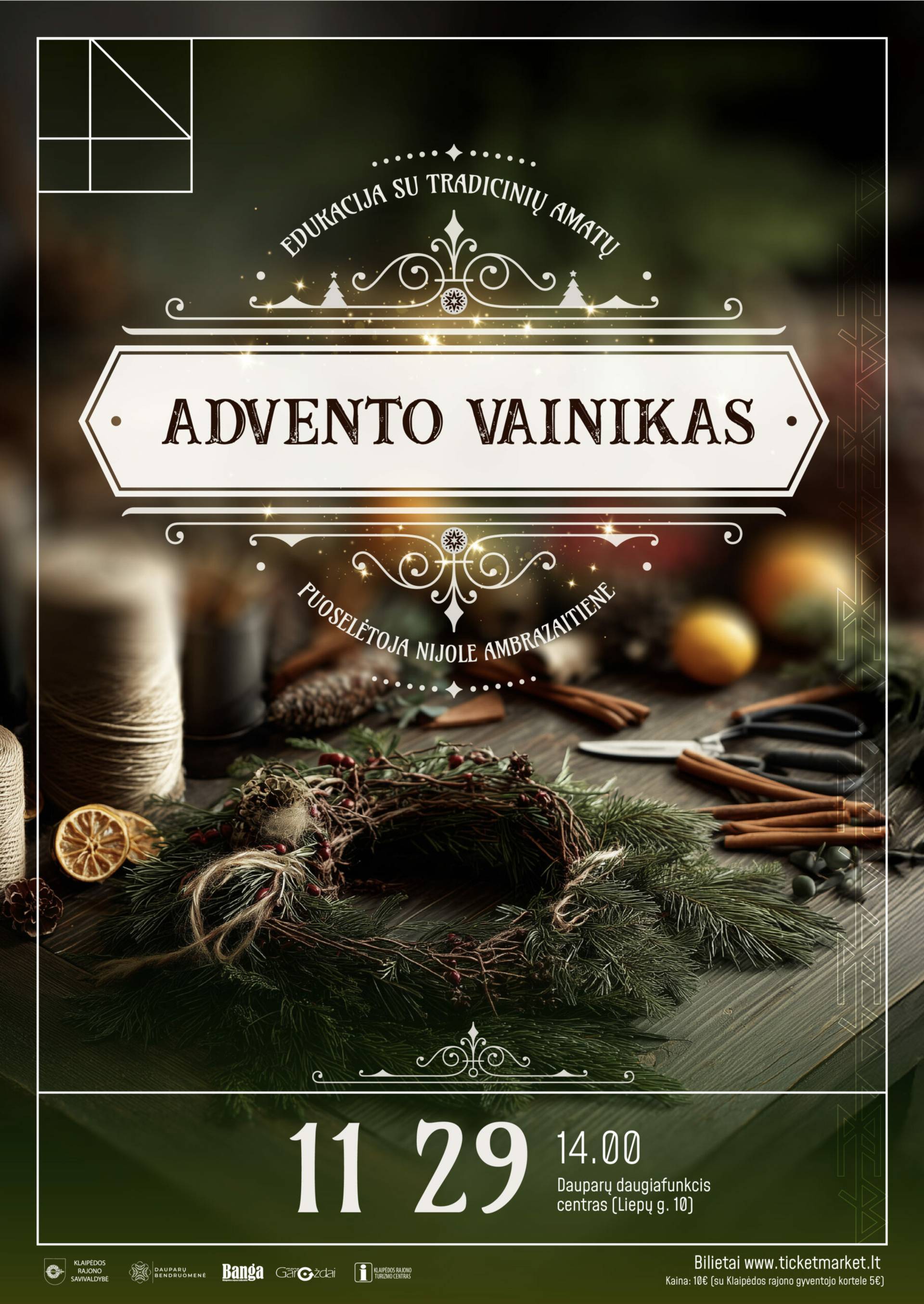 Edukacijoje „Advento vainiko kūrimas“ kartu su tradicinių amatų puoselėtoja Nijole Ambrazaitiene kursime vainikus iš natūralių medžiagų, prisiminsime jų simboliką ir prasmes.