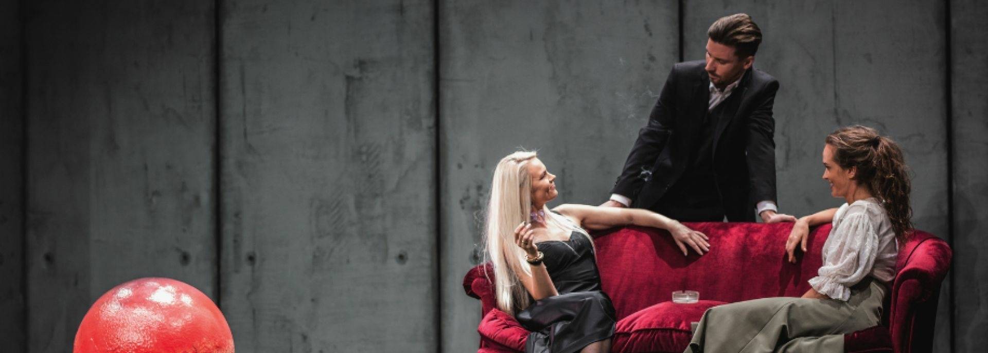 Šiuolaikinio švedų dramaturgo Larso Noréno pjesė „Demonai“ – negailestingai atvira ir su nemenka absurdo humoro doze. Veiksmas vyksta puikiai įrengtame bute. Scenoje keturi trisdešimties metų žmonės – dvi susituokusios poros, gyvenančios tame pačiame daugiabutyje. Už klestinčio pasiturinčių šeimų fasado – lėta ir neišvengiama katastrofa, kuri vyksta kasdien. Ne veltui L. Norénas dažnai gretinamas su Strindbergu – jo „Demonai“ yra apie tą patį žmogiškąjį paradoksą: sugebėjimą (ir net slaptą vidinį norą) kito, artimo ir gal net tebemylimo žmogaus, gyvenimą paversti pragaru.