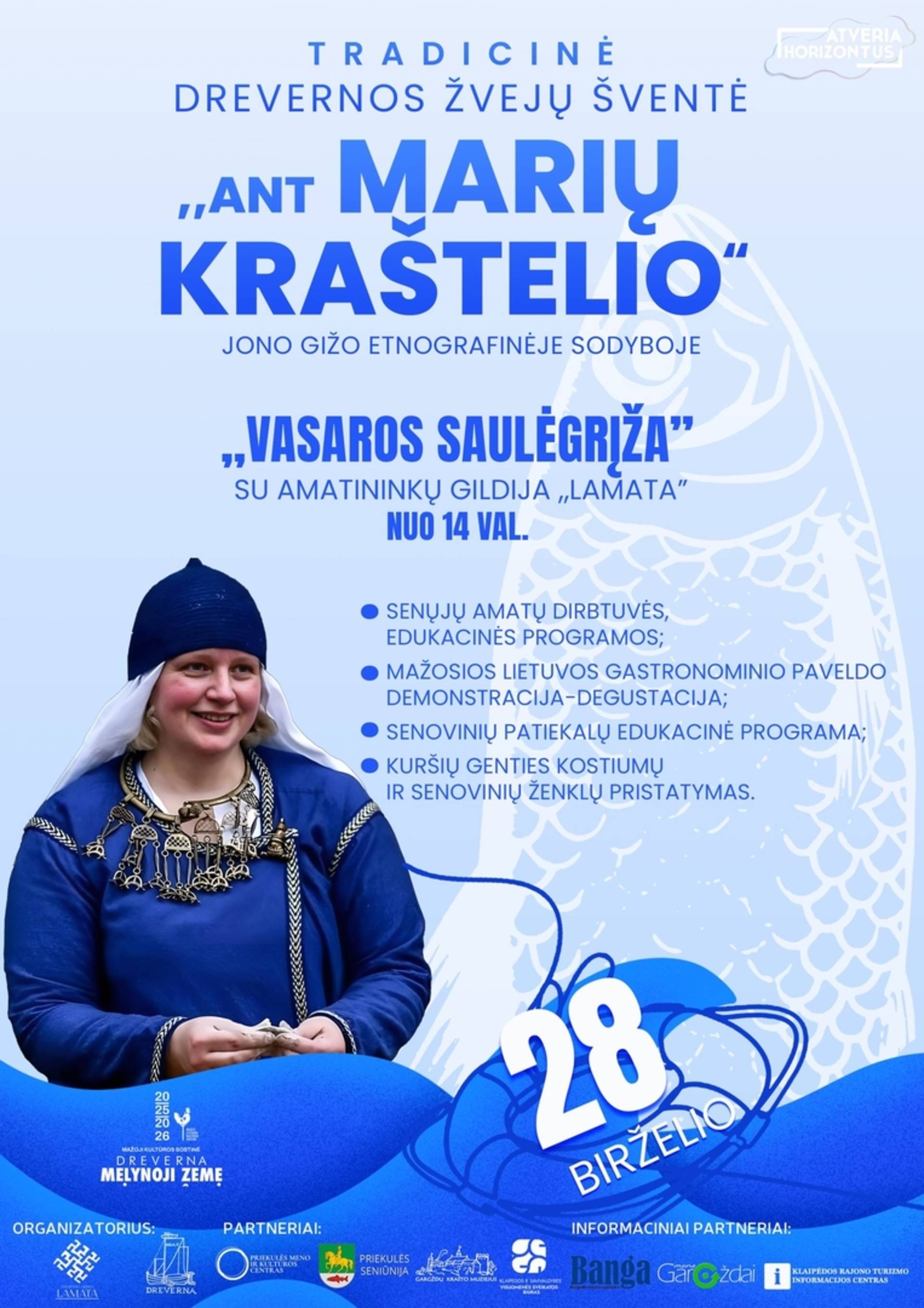 Ketvirtąjį birželio savaitgalį Kuršių marių pakrantėje vyks tradicinė Drevernos žvejų šventė „Ant marių kraštelio“ – tai išskirtinė diena, kurioje susilieja pamario krašto tradicijos, kultūra, muzika ir bendrystė.