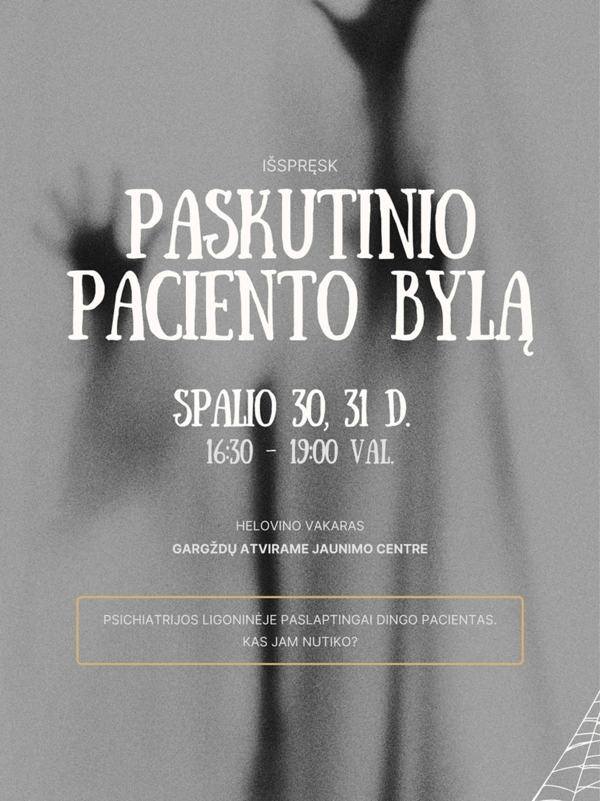 Ateik į Gargždų atviro jaunimo centro šiurpnakčio renginį ir išspręsk paslaptingą bylą.