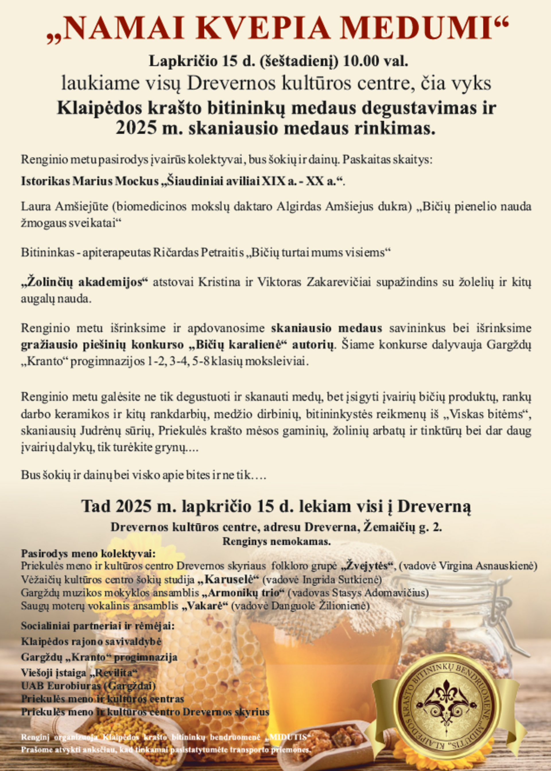 Klaipėdos krašto bitininkų medaus degustavimas ir 2025 m. skaniausio medaus rinkimai „Namai kvepia medumi“