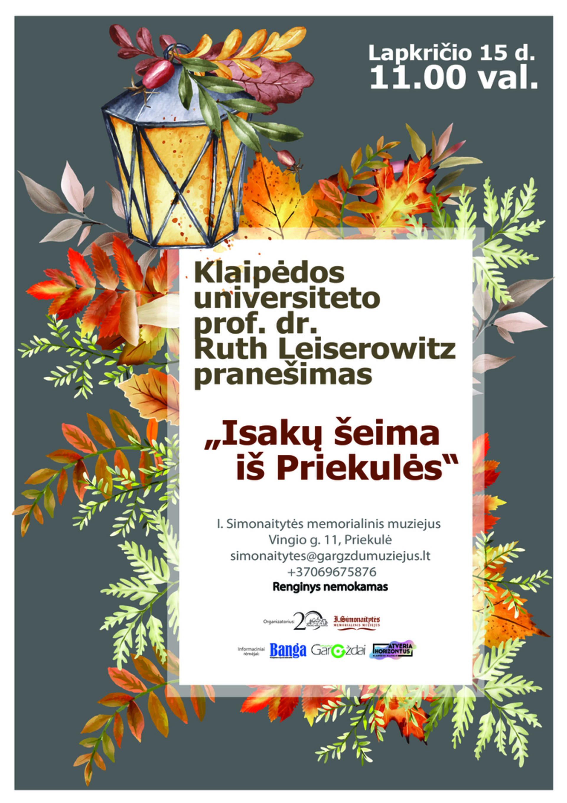 Klaipėdos universiteto prof. dr. Ruth Leiserowitx pranešimas „Isakų šeima iš Priekulės“