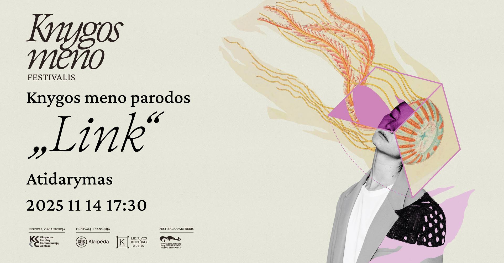 Š. m. lapkričio 14 d., penktadienį, 17.30 val. Klaipėdos kultūrų komunikacijų centro (KKKC) Parodų rūmuose atidaroma knygos meno festivalio paroda „Link“, kuratorė Violeta Mackialo.