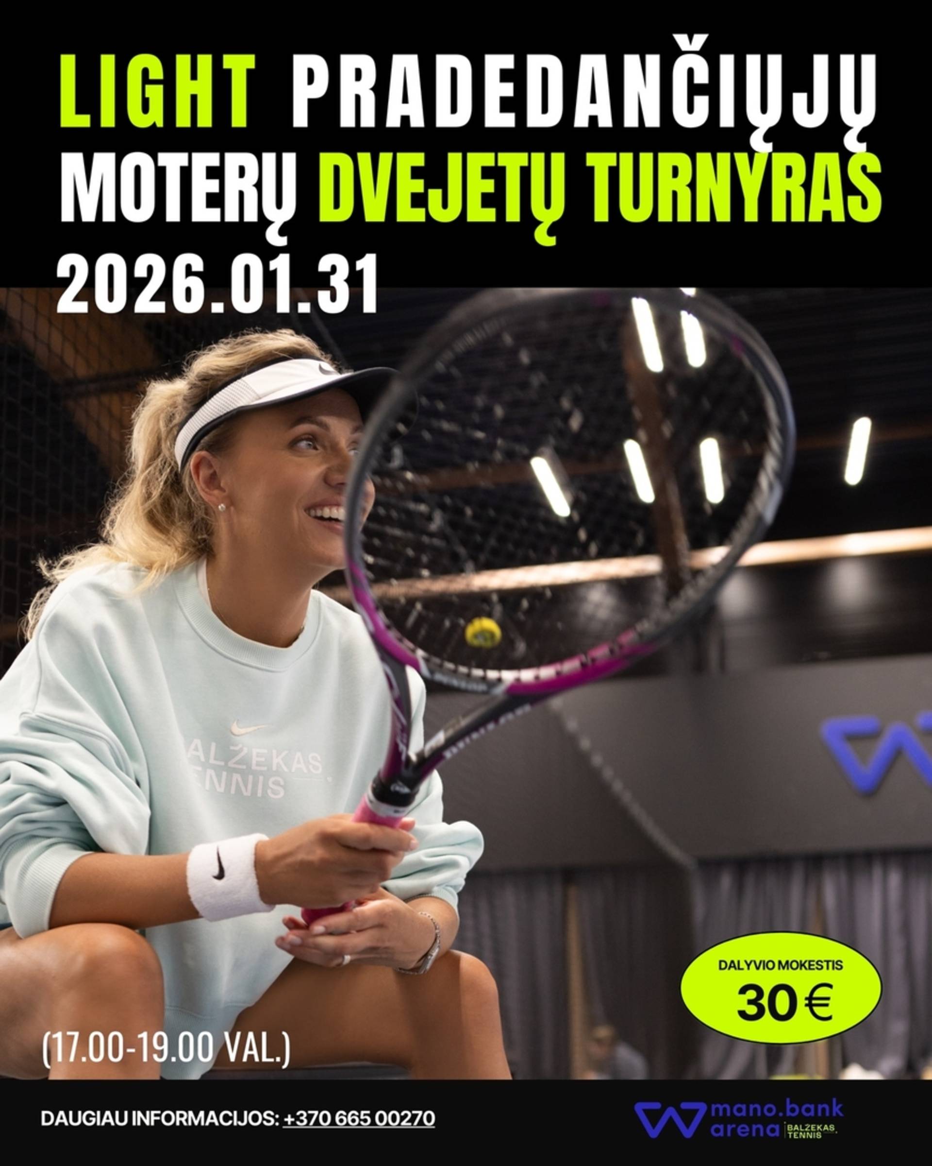 Kviečiame moteris, kurios dar tik žengia pirmuosius žingsnius varžybose, bet nori išbandyti save draugiškoje, palaikančioje ir motyvuojančioje aplinkoje. Tai puiki proga pasimėgauti žaidimu, įgyti patirties ir pasitikėjimo aikštelėje.