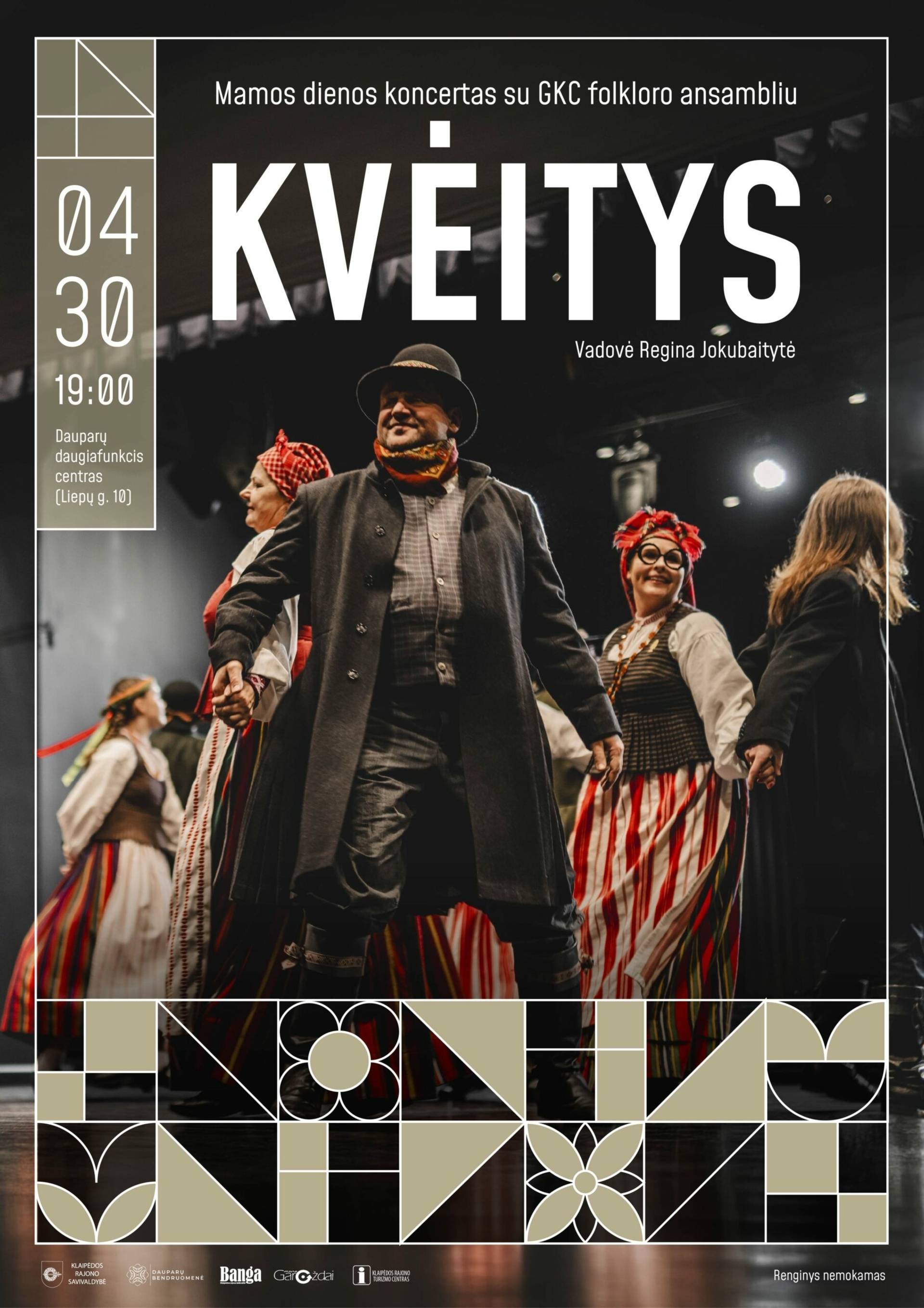 Scenoje pasirodys Gargždų kultūros centro folkloro ansamblis „Kvėitys“, vadovaujamas Reginos Jokubaitytės. Kolektyvas puoselėja autentiškas tradicijas ir išsiskiria gyvu folkloro skambesiu – dalyvauja televizijos projektuose, tarp jų „Duokim garo“, konkursuose, festivaliuose bei Dainų šventėje.