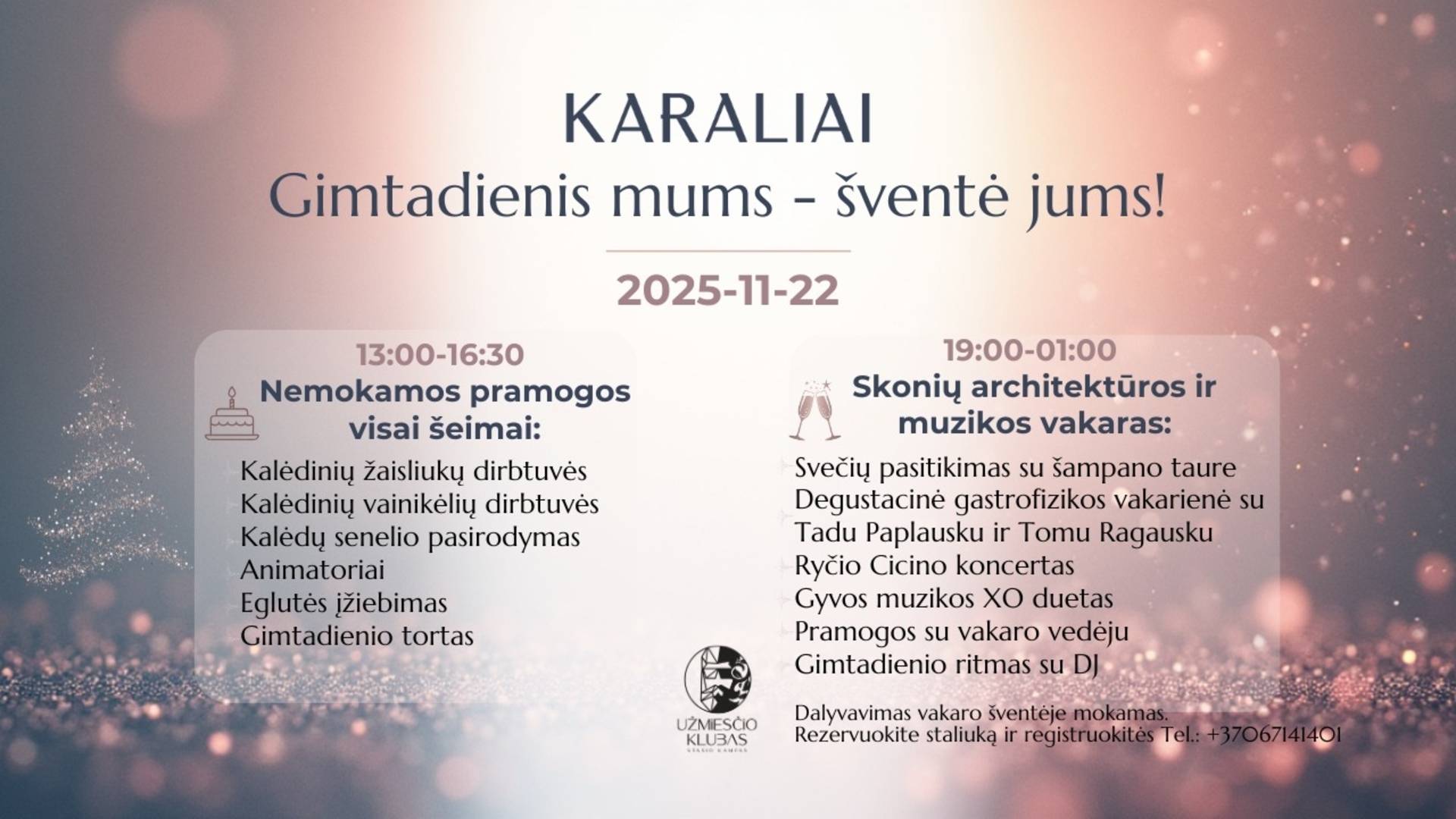 Vakarinė šventės dalis – mokama, vietų skaičius ribotas. Kaina – 70,00 EUR asmeniui.