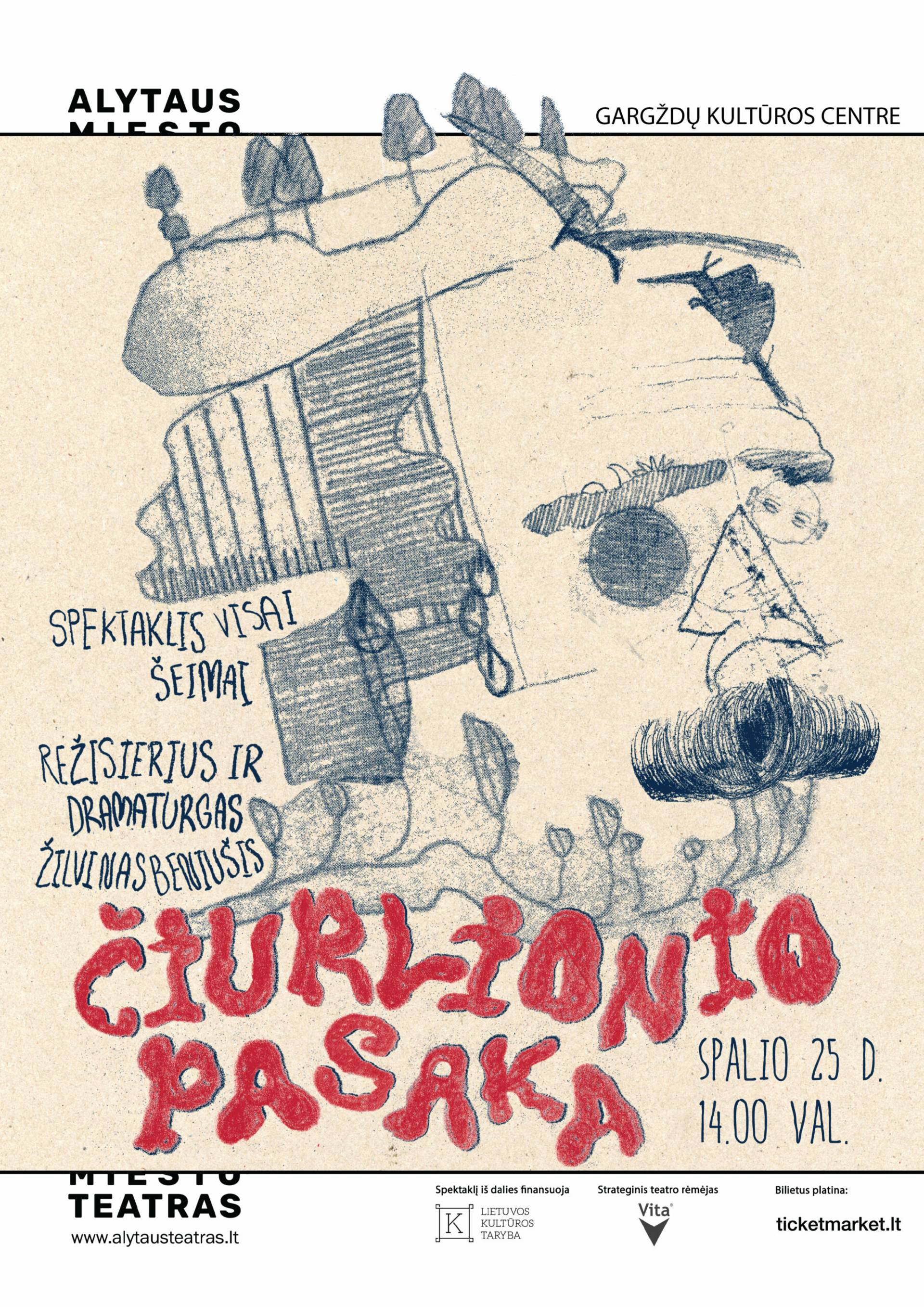 Alytaus miesto teatras atveria duris dar mažai Lietuvoje pažįstamam šiuolaikinės klounados žanrui ir kviečia į spektaklį vaikams „Čiurlionio pasaka“. Spektaklį apie žymųjį dailininką ir kompozitorių Mikalojų Konstantiną Čiurlionį kuria šio žanro Lietuvoje pradininkas, režisierius Žilvinas Beniušis. Spektaklio epicentre – pats Čiurlionis, apie kurį pasakoja jo dukra Danutė, gimusi beveik tuo pat metu, kuomet Čiurlioniui teko išeiti iš šio gyvenimo. Ji apie Čiurlionį pasakoja lyg kurdama pasaką, pilną ryškių veikėjų ir stebuklingų su tikrove (bei kūryba) susijusių įvykių. Visas veiksmas vyksta dailininko studijoje, kuri tampa jo gyvenimo ir fantazijos vieta. Komiška ir kartu stebuklinga atmosfera kuriama aiškios fizinės vaidybos ir magiškos scenografijos, susijusios su menininko tapybos darbais, dėka. Spektaklyje Čiurlionis vaizduojamas kaip linksmas čapliniškas herojus, plačia širdimi, nuolat įsiveliantis į komiškas situacijas. Jo gyvenimas – tarsi cirko pasirodymas, kuriame niekada netrūksta truputį magiškų elementų. Spektaklis rekomenduojamas vaikams nuo 6 metų ir visai šeimai. Režisierius ir dramaturgas – Žilvinas Beniušis Scenografas – Vitalij Strigunkov Kostiumų dailininkė – Daiva Urbonavičiūtė Dailininkas dekoratorius Algimantas Rokas Černiauskas Plakato autorius Maksim Nikiškin Režisieriaus asistentė: Alma Purvinytė Garso režisierius: Dovydas Šernas Šviesų dailininkai: Vytautas Skruibys, Natali Melnychuk Meno vadovė: Ksenia Romashenko Direktorė: Inesa Pilvelytė Vaidina: Vincas Vaičiulis - Čiurlionis Andra Kavaliauskaitė – Sofija, Balsas Eglė Juškaitė – Motina, Bronislava Volman Ona Gudaitytė – Marija, Jadvyga Jonas Gaižauskas - Tėvas Vidas Vaškius – Daktaras Markevičius, Profesorius Sigetinskis Vaidas Praspaliauskas – Profesorius Noskovskis, 1 vagis. Tomas Pukys - Mstislavas Dobužinskis, Profesorius Bržezickis, 2 vagisa