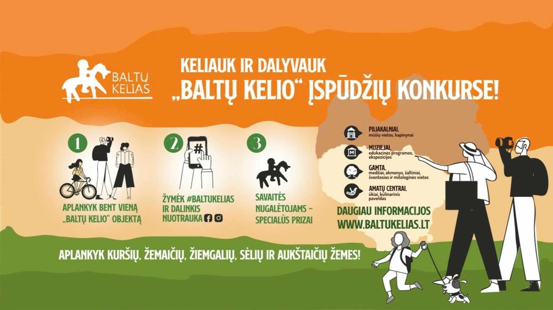 Kiekvieną savaitę atrinksime originaliausias, įdomiausias nuotraukas, kelionių įspūdžius ir jų autorius apdovanosime specialiais prizais. Kiekvienos savaitės nugalėtojai bus skelbiami „Baltų kelio“ Facebook paskyroje ir tinklapyje www.baltukelias.lt.